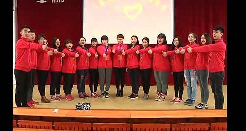 采访中期,极光青协的成员们穿着统一的会服在yl23455永利集团报告厅表演了极光的特色,手语会歌--《爱在极光》。