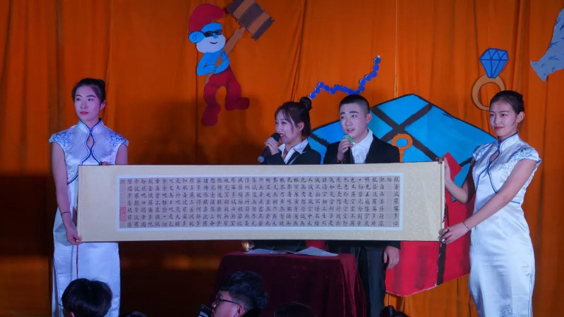 大会伊始,17级学生会主席王文涛别具一格的热场秀吸引了大家的注意力,随后由舍务监察部和大学生记者团合力制作的开场宣传小视频和主持人绚丽夺目的出场为精彩纷呈的拍卖会渲染了气氛,其次由舍务监察部部员带来的开场歌曲将场下气氛推向高潮。
