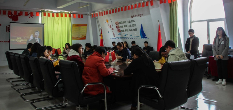 此次会议的主题是“实现中华民族伟大复兴是近代以来中华民族最伟大的梦想。”辅导员韩帅于会议上提到了中国历史上的盛世以及近代中国的衰败和资产阶级政党的局限性,而现在中国进入了中国特色社会主义的新时代,在五千年的背景下,续写了中华民族的繁荣。随后会议提及中国梦,中国梦是国家情怀,我们要坚持中国特色社会主义理论体系、弘扬民族精神、凝聚中国力量。