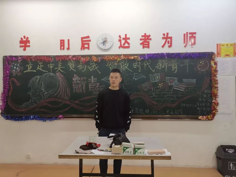 近日来中美贸易争端不断,身为社会主义时代的新青年,我们更应该要努力奋斗建设经济中国,为了让同学们深刻意识到发展中国、强大中国的重要性和责任感,作为当代大学生,我们要顾全大局、勇于担当,不可只顾自身利益处理问题。