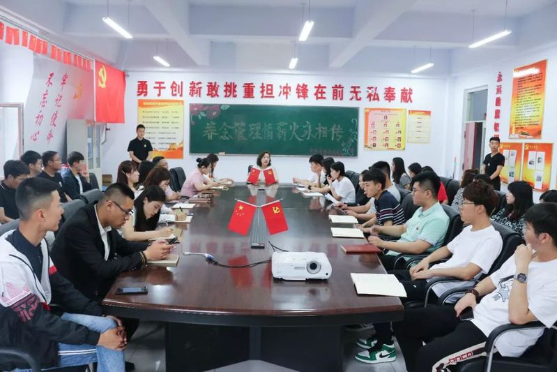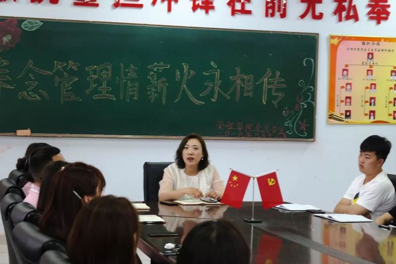 为了总结实习生涯,传递管理情怀,yl23455永利集团于2019年6月13日中午11:30在会议室开展了以《眷念管理情,薪火永相传》为主题的大四毕业主题党课活动。出席本次活动的有党总支书记夏凡、分团委书记唐姝竹、学生党支部书记李爽、15级辅导员韩帅老师、16级辅导员杨静老师、高铭彤老师、18级辅导员刘悦明老师及全体学生党员。