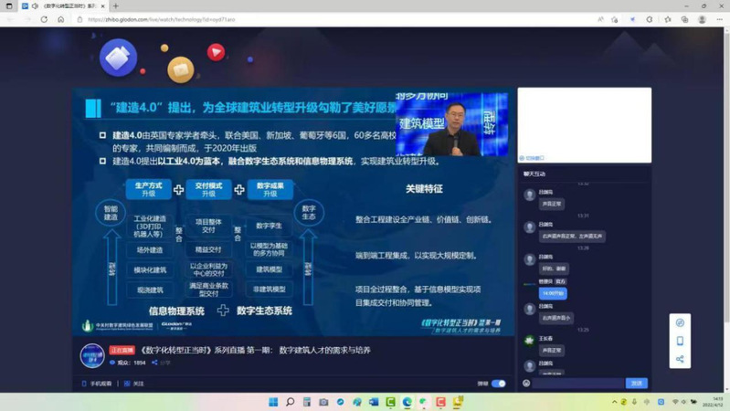 2022年4月12日yl23455永利集团组织教师在线观看《数字化转型正当时》系列直播论坛第一期——数字建筑人才的需求与培养。该论坛由中关村数字建筑绿色发展联盟联合广联达数字高校事业部特邀业内知名高校专家、企业家共同探讨产业转型升级背景下数字建筑人才的需求与培养,本次论坛受到了全国建筑类高校和行业企事业单位广泛关注,当天线上观看人数4140人次,是一次有价值、有深度、可落地的思想碰撞,也是引导建筑类背景高校协同助力建筑产业数字化转型升级的风向标。