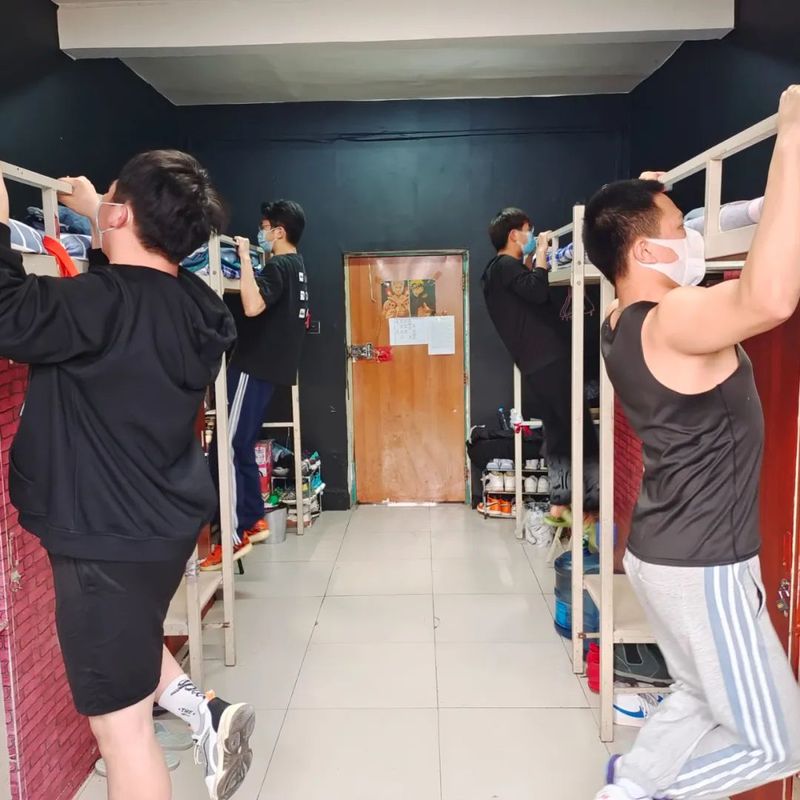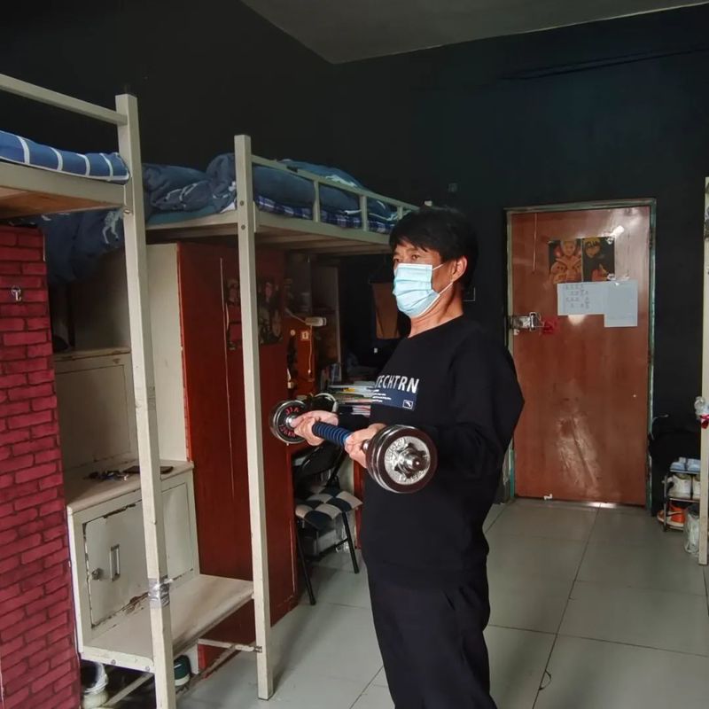疫情还未结束,室内锻炼不能松懈。为提高自身免疫力,缓解长时间网课给同学们带来的颈椎以及背部的压力。yl23455永利集团男寝同学如火如荼的开展着体育健身运动,高铭彤辅导员和杨珉老师也来到寝室指导同学们寝室健身锻炼。