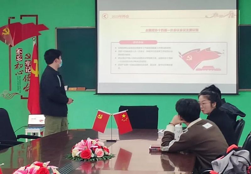 会议伊始,由张子恒带领学生党员回忆了2023年全国两会召开,全国两会召开对于全国各族人民在党的领导下奋进新征程、创造新伟业具有重大而深远的意义。作为一名大学生,要认真学习宣传并贯彻落实好会议精神,牢牢把握历史主动从党和国家事业发展全局出发,深刻认识站在新的历史起点上,保持战略定力、坚定必胜信心,团结奋斗,凝聚力量,朝着既定目标奋勇前进。