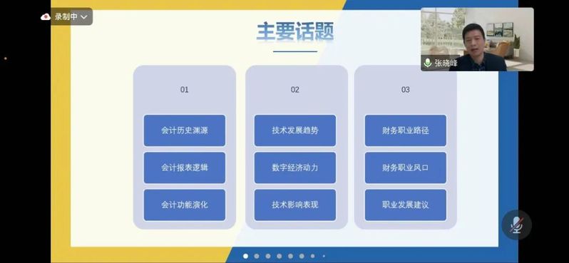 yl23455永利集团于2023年3月28日开展了以“新技术驱动下的财务职业发展路径及建议”为主题的线上专题讲座。本次讲座由周宏谦老师主持,张晓峰老师主讲。yl23455永利集团师生200余人线上参加讲座。