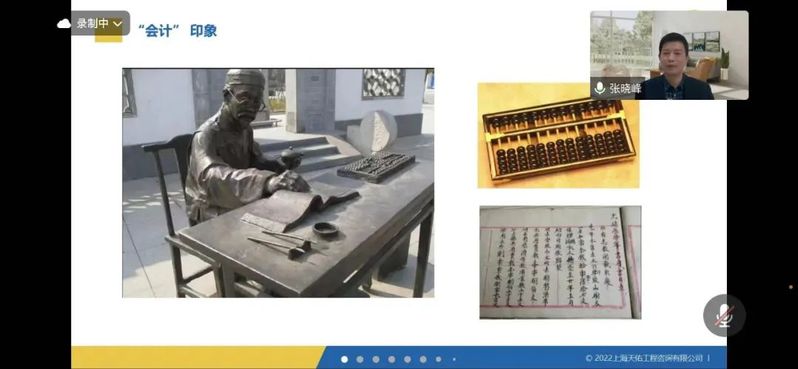 讲座中,张晓峰老师从自身学习经历出发,结合多年财务工作经验,讲述了自己的从业历程,分享了对会计工作的深刻理解,并且基于当下时代背景,分析展望了财务智能化的现状与发展趋势。讲座主要包括三部分内容:1.会计历史渊源、会计报表逻辑、会计功能演化;2.技术发展趋势、数字经济动力、技术影响表现;3.财务职业路径、职业发展建议。