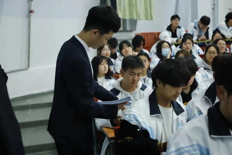 宣讲临近结束,安委会协助派出所民警,向学生们发放反诈宣传单。积极向同学们宣传反诈,减少或避免大学生再受诈骗侵害。