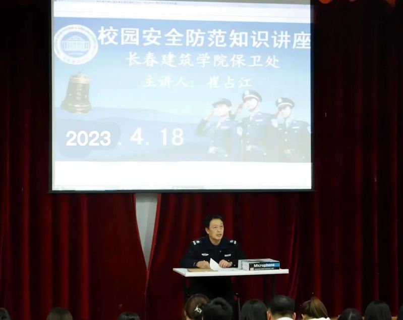 会议伊始,主讲人治安科科长崔占江为学生们列举了一些校园发生的真实案例,科普了许多校园内容易发生的安全隐患,以及在校内应如何保护好自身的安全问题,用真实的案例敲响学生安全意识的警钟,并结合相关法律法规提醒学生要明确各自的安全义务。同时也指出了学生安全意识不足,注意力不集中,思想麻痹等问题。
