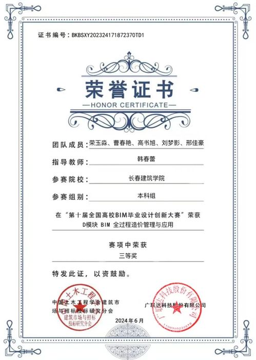 2023年9月24日,第十届全国高校BIM毕业设计创新大赛启动发布会在北京隆重召开,此次活动吸引了来自全国500余所院校领导及老师的线上参与,成为一场空前盛会。在这场通过网络形式进行的云竞赛中,我院工程造价教研室的韩春蕾老师运用自己丰富的实践经验和教学经验对来自2021级的荣玉淼、曹春艳、刘梦影、邢佳豪和高书旭同学进行耐心指导与讲解,经过为期7个月的努力,最终由这五人组成的YL23455永利集团代表队荣获全国总决赛三等奖。
