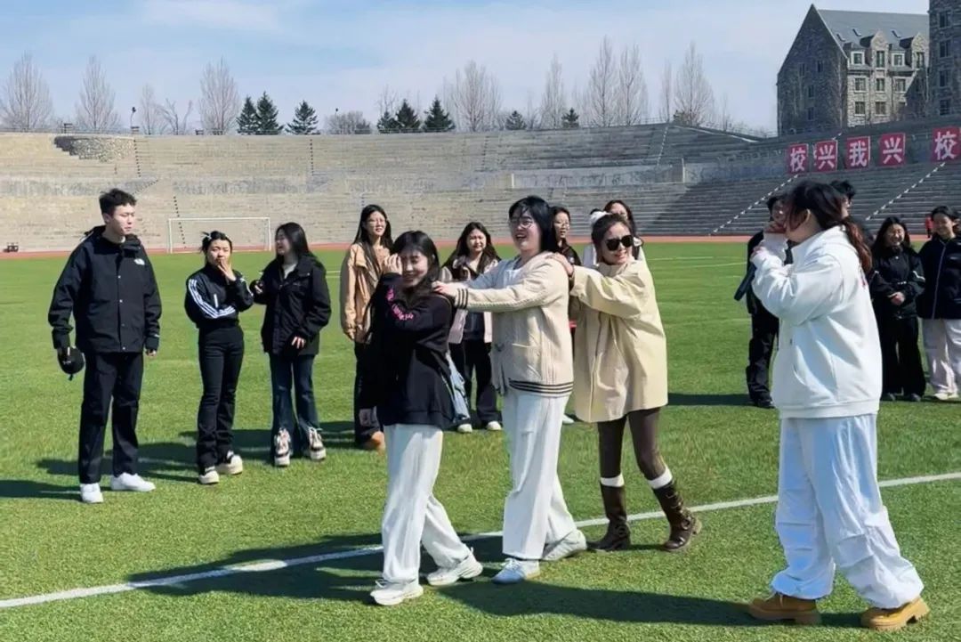 “蒙眼特种兵”极富挑战性,参与者紧闭双眼,站成一列,依靠主持人指令完成各种任务。这一环节不仅考验个人勇气,更考验队友间的信任。同学们凭借对队友的信任勇往直前,加深了彼此间的信任与默契。