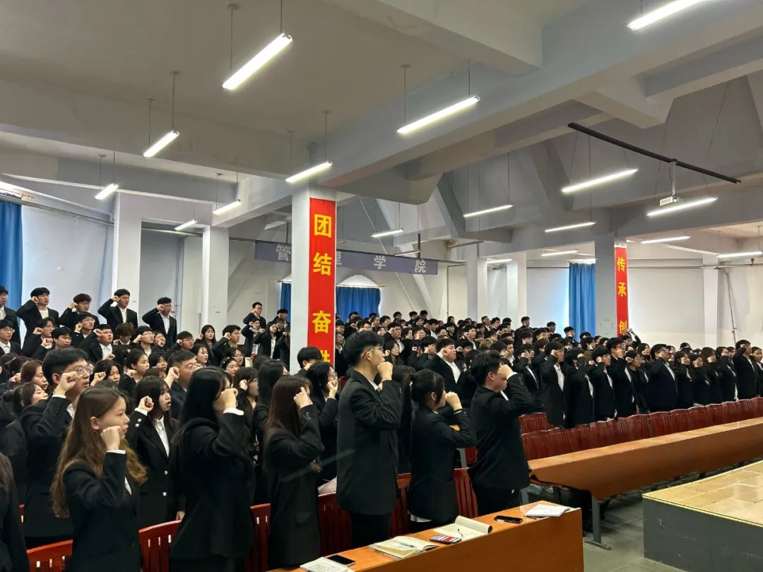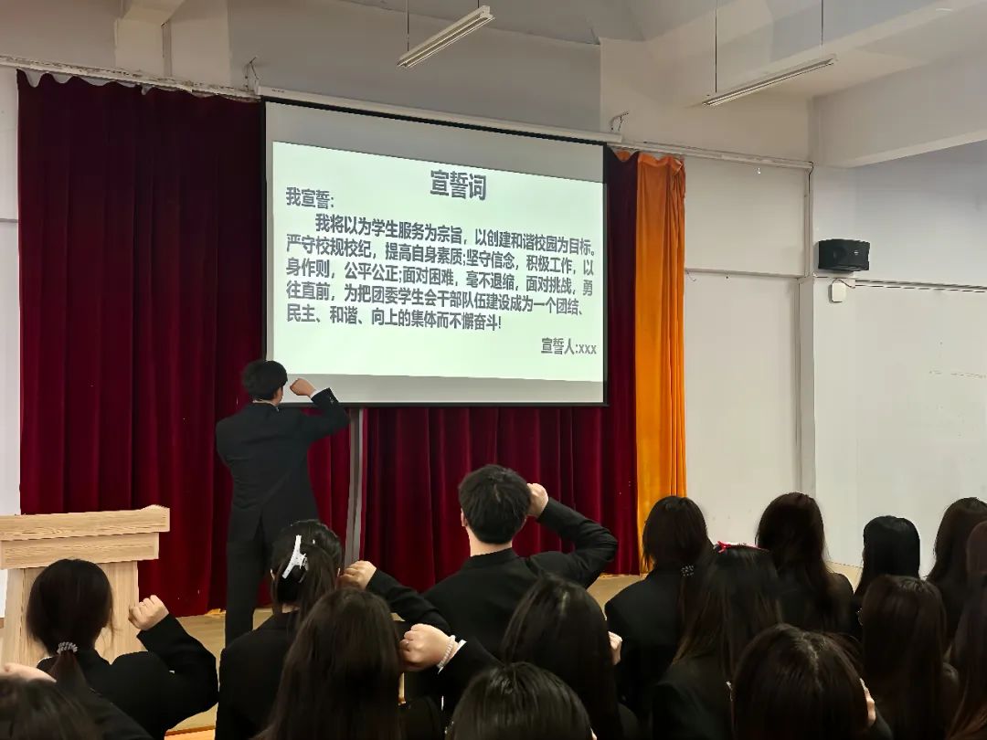 最后,本次大会在学生会主席刘长亮的带领下,全体团委学生会成员进行宣誓。宣誓的声音响彻全场,既表达出了每个人的决心,同时也振奋着在场的每一个人。本次大会在宣誓中落下帷幕。