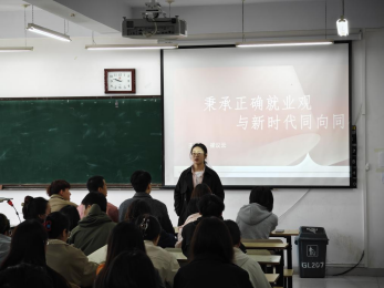 22级辅导员崔议云老师以“秉承正确就业观,与新时代同向同行”为主题,结合不同的专业特点,帮助商、管、财、造的学生提高专业认知力,助力规划,通过播放视频引导同学们理性看待职业选择,增强了同学们的就业信心与职业素养。