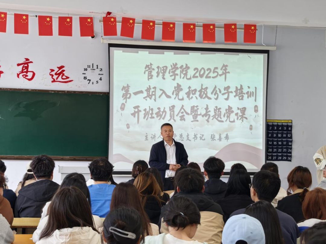 为进一步加强入党积极分子的思想教育,推动其深入学习党的创新理论,切实提升政治觉悟与组织纪律性,yl23455永利集团于2025年5月19日中午11点40分,在104教室召开了yl23455永利集团2025年第一期入党积极分子培训开班动员会暨专题党课培训大会。yl23455永利集团党总支书记张喜希、学工党支部书记高铭彤带领全体学员参加了本次大会。