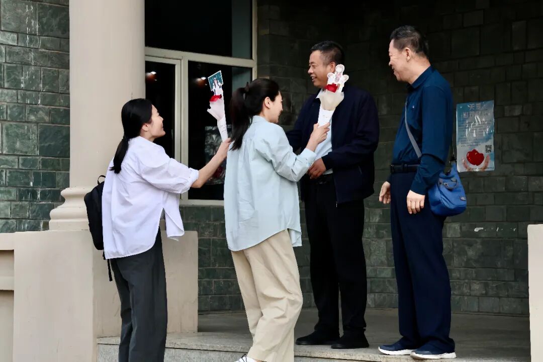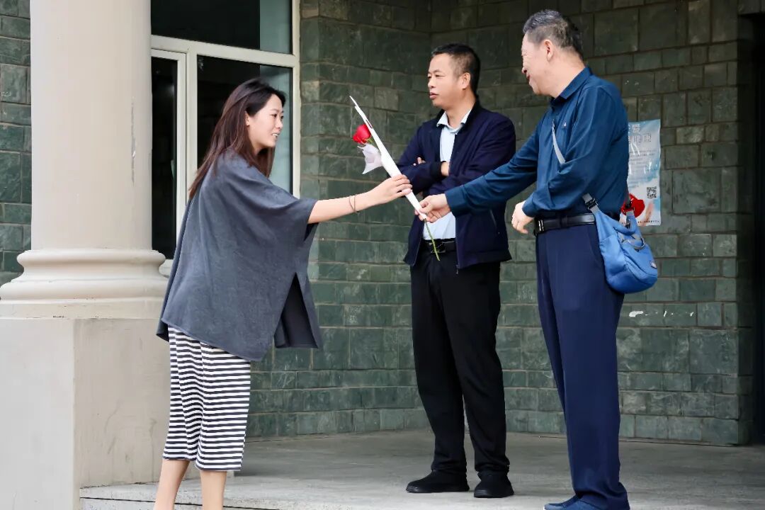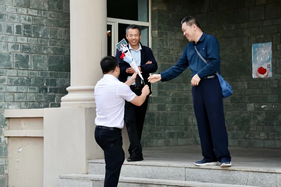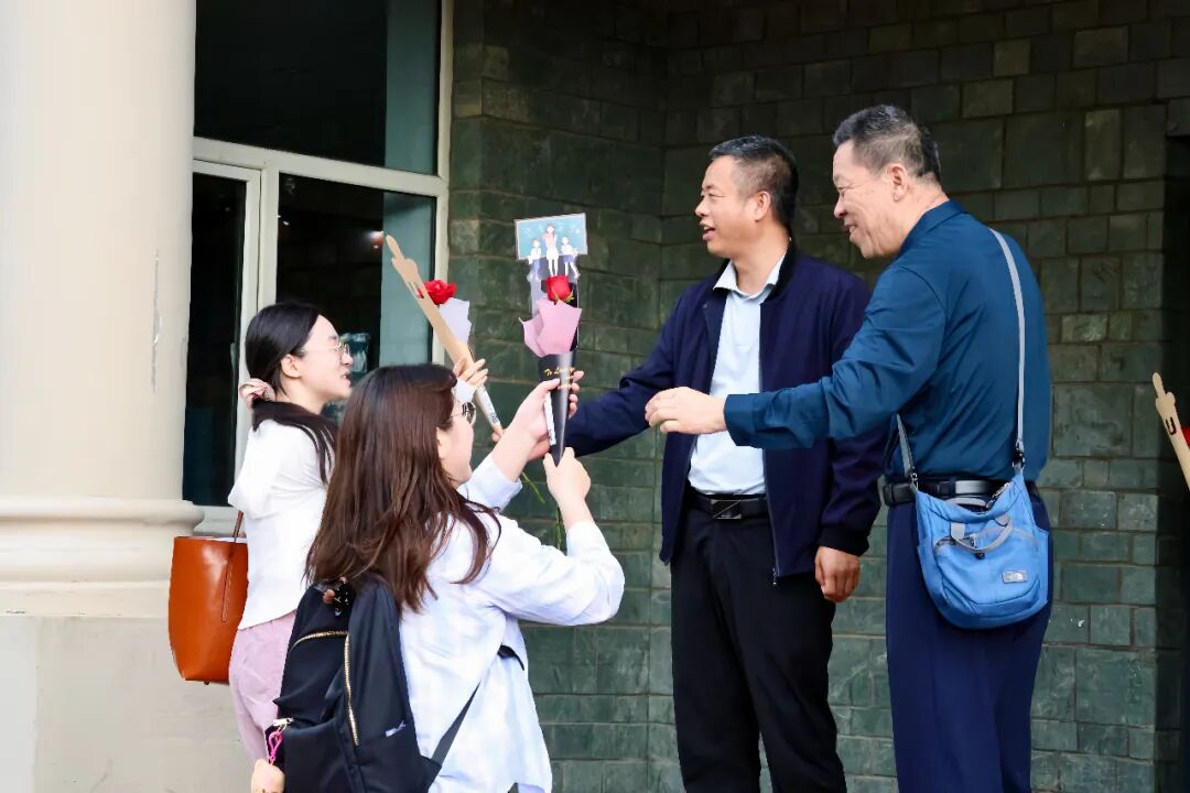 邱国林院长与张喜希书记早早便来到活动地点,亲手整理着为老师们准备的鲜花,娇艳的玫瑰每一束都包裹得精致美观,承载着yl23455永利集团对教职工的深切关怀。随后,两位领导亲自将鲜花递到每一位教职工手中,都收到了这份满载心意的礼物。“教师节快乐!感谢您的辛勤付出!”递花的同时,邱国林院长与张喜希书记也不忘送上亲切的问候,与老师们亲切交谈,关切询问大家的工作与生活情况,叮嘱大家在忙碌之余注意保重身体。接过鲜花的老师们脸上满是笑容,手中的花香与心中的暖意交织。