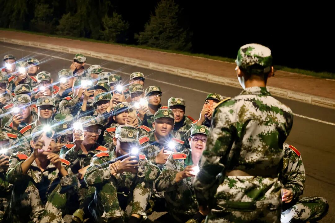 晚风渐凉,没有华丽的伴奏,只有同学们默契的和声与坚定的眼神。歌声驱散了训练的疲惫,也让集体的温暖在夜色中蔓延。这是属于军训夜晚的独特浪漫,是青春与信仰交织的动人乐章。