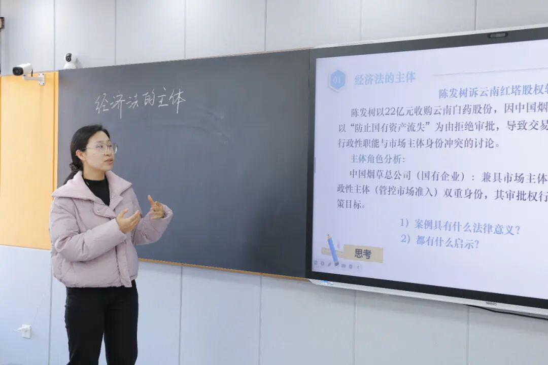 均衡”理论具象化,通过收益矩阵清晰拆解纳什均衡点的推导逻辑,让“个人理性与集体理性的关系”这一核心命题跃然课堂。荀珣老师巧用思维导图搭建经济法知识框架,以“主体与行为”为两大支柱,结合转让诉讼、垄断典型案例深入剖析权力与义务的平衡关系,借微视频强化核心知识点记忆,抛出“经济法主体如何确立”的课后思考题,引发深度思考。郝仪兰老师从“农夫山泉创业人资产案例”入手,围绕“什么是资产—揭秘企业的财富人设从何而来”主题,以“过去、现在、未来”三维视角,层层递进解读资产定义与确认条件的双重逻辑。