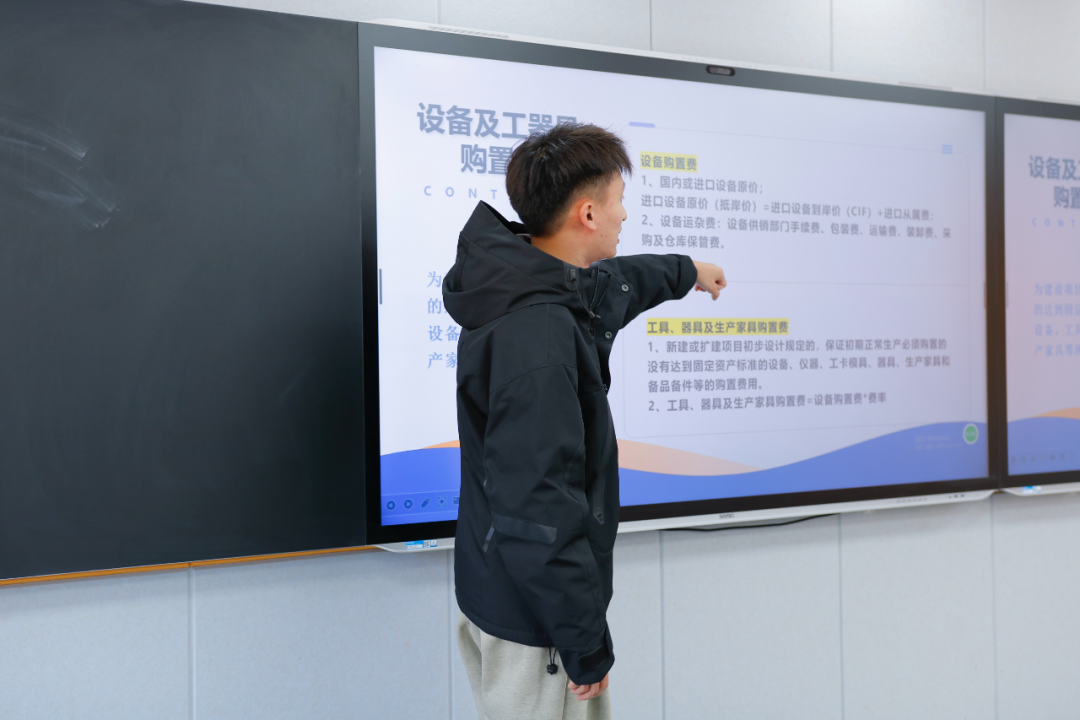 此外,孙继坤老师依托“石家庄天安百公擅自开工建设案”,结合知识图谱梳理建筑许可法律制度脉络,聚焦施工许可证的申请条件与管理要点,实现法理与实务的紧密衔接。孙艺宁老师围绕工程管理中的“资金时间价值”,从概念含义到计算方法,以清晰的逻辑链条搭建知识体系。祖微老师以“导入—教学目标—前测—参与式学习—后测—小结”六步教学法,为“招投标与合同管理”课程构建了完整的教学闭环。张继文老师通过“海外购置设备”真实案例,引出沉浸式学习进口设备原价计算方法,并结合例题深化关键影响因素的理解。肖迪老师巧妙将数据字典比作数据库的“活地图册”,以生动的类比为切入点,系统讲解其核心作用、关键价值与多元存在形式,让抽象的数据库工具知识变得直观易懂。慕童老师以“100元未来还是100元吗”的灵魂拷问开篇,用通俗语言解读单利与复利概念,让货币时间价值这一知识点变得通俗易懂。