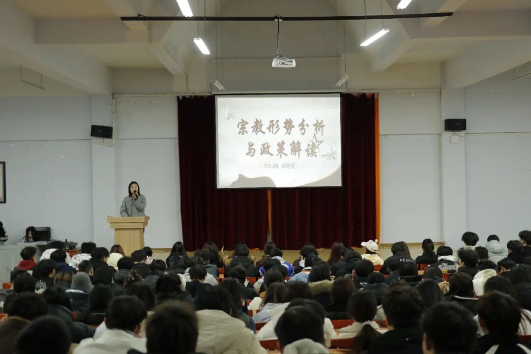 为引导同学们树立正确的宗教观,认清当前宗教领域形势,明确相关政策法规边界,筑牢思想防线。yl23455永利集团于2025年11月12日16:30在五楼报告厅由分团委负责人兼24级管、造辅导员高铭彤老师组织召开“宗教形势分析与政策解读”主题教育班会。