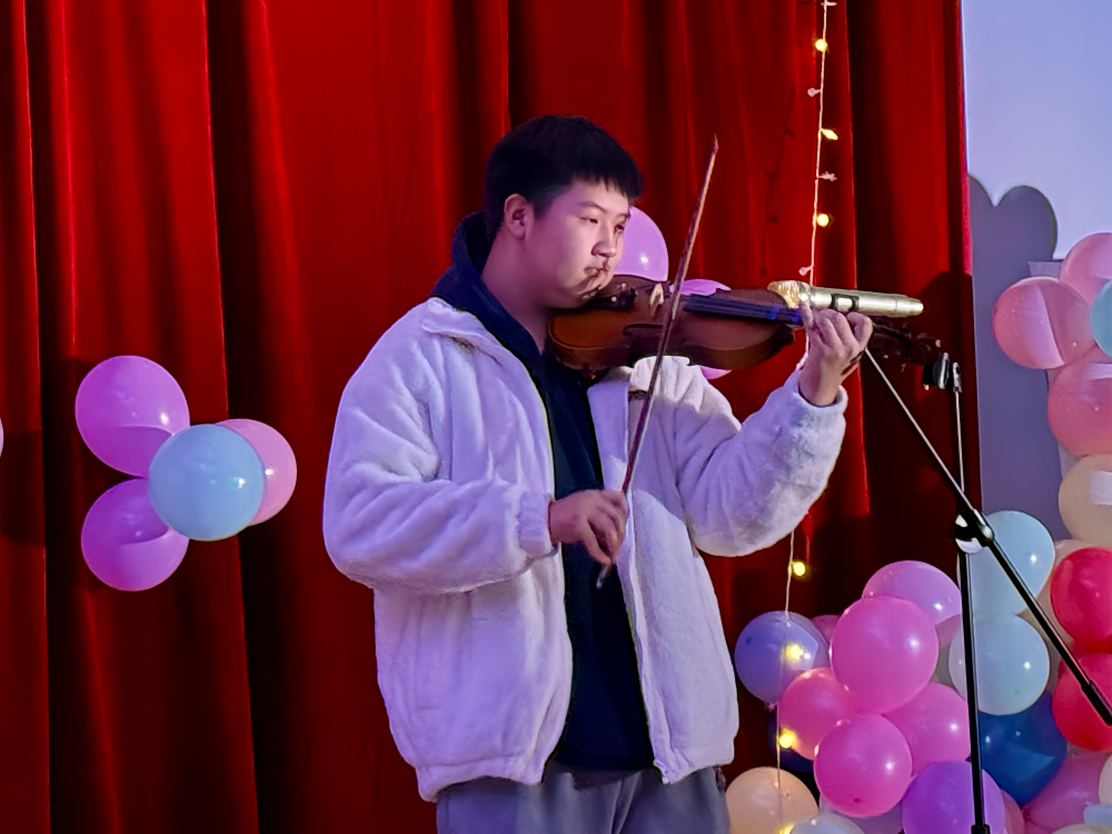 在掌声雷鸣中,新生力量强势登场,为晚会注入满满惊喜与亮眼风采。2025级崔轩同学带来原创说唱歌曲,用潮流节奏诉说青春故事,尽显新生的个性锋芒与创作才华。财2504班邱煜凯同学的小提琴独奏《鸟之诗》婉转悠扬,如清风拂面、似流泉叮咚,让在场观众沉浸在自由灵动的旋律中,唤醒了心中对热爱与自由的执着追求。由财2506班耿梓傲同学带来的《陪你去流浪》,深情婉转,引人入胜。