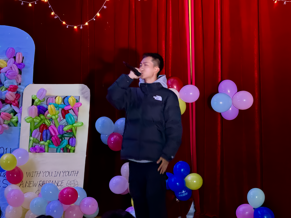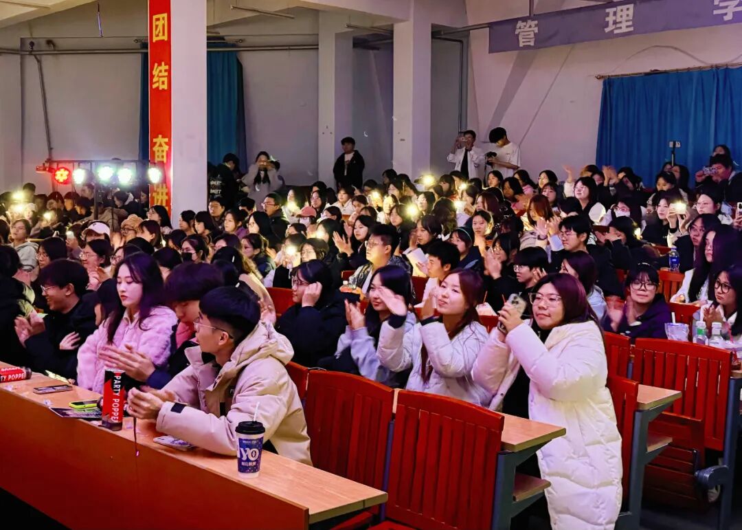 管理学子的精彩表演轮番上演,各展其长、亮点纷呈。造2404班王士魁与财2403班尹铭茁联合呈现的《林中鸟》,以饱满炽热的热情与嘹亮高亢的歌声,将晚会气氛推向新的高峰。管2501班严欣雨同学带来的《至少还有你》温情脉脉,细腻诠释了同窗情谊的珍贵与温暖。房2301班丁源演唱的《想你的夜》深情款款,细腻动人的演绎打动了在场每一位观众,一首首声情并茂的演唱逐渐将整场晚会热起来。