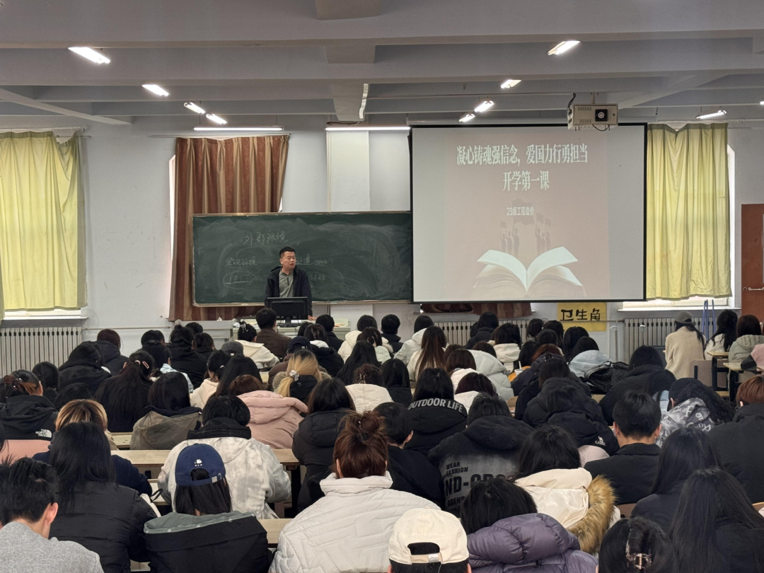 会议伊始,王伟博老师以全国“两会”精神为切入点,结合建筑行业绿色发展、乡村振兴等国家政策,解读了建筑、造价专业学子“专业报国”的时代内涵,分享行业爱国榜样事迹与学生寒假实践案例,引导同学们将爱国情怀融入日常学习与专业实践,树立“爱国先修业,成才为报国”的共识,同时发起“结对帮扶、共促成长”倡议,凝聚班级向心力。同时融入食品安全科普,讲解校园饮食安全知识,提醒同学们警惕风险、守护健康,以点滴行动践行青年担当。