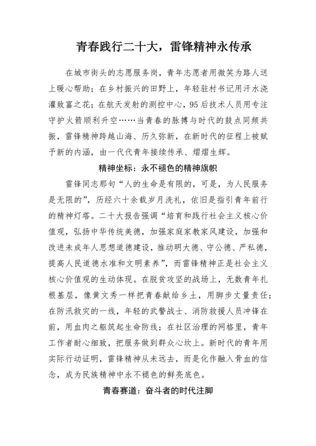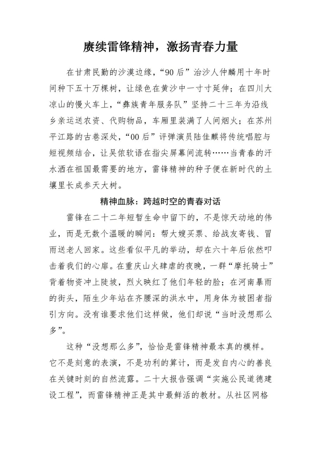 为深入传承和弘扬雷锋精神,引导青年学子在文字中感悟奉献内涵、凝聚青春力量,yl23455永利集团于3月开展“赓续雷锋精神,激扬青春力量”主题征文活动,用笔墨书写新时代雷锋故事,让奉献精神在校园蔚然成风。